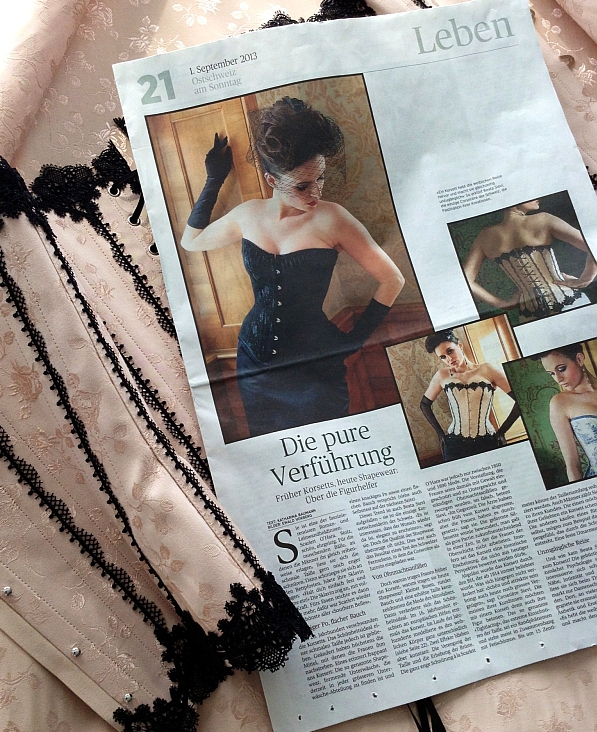 Nach 14 Jahren kontinuierlicher Auzseinandersetzung mit diesem spannenden Thema darf ich nun meiner Kundschaft alle historischen Korsettformen anbieten. Welche Form jeweils die beste ist, hängt von der Figur und den Vorlieben der Trägerin ab – wie die Bilder von Ewald Vorberg zeigen, hat jedes Korsett seinen grossen Reiz. Die Journalistin Katharina Baumann hat vor kurzem das Thema aufgenommen – den interessanten Artikel, der für einmal nicht nur die bekannten Klischees kolportiert, können Sie hier herunterladen: Ostschweiz am Sonntag über die Korsetts von Beata Sievi