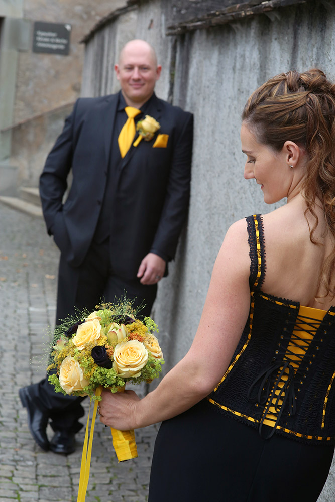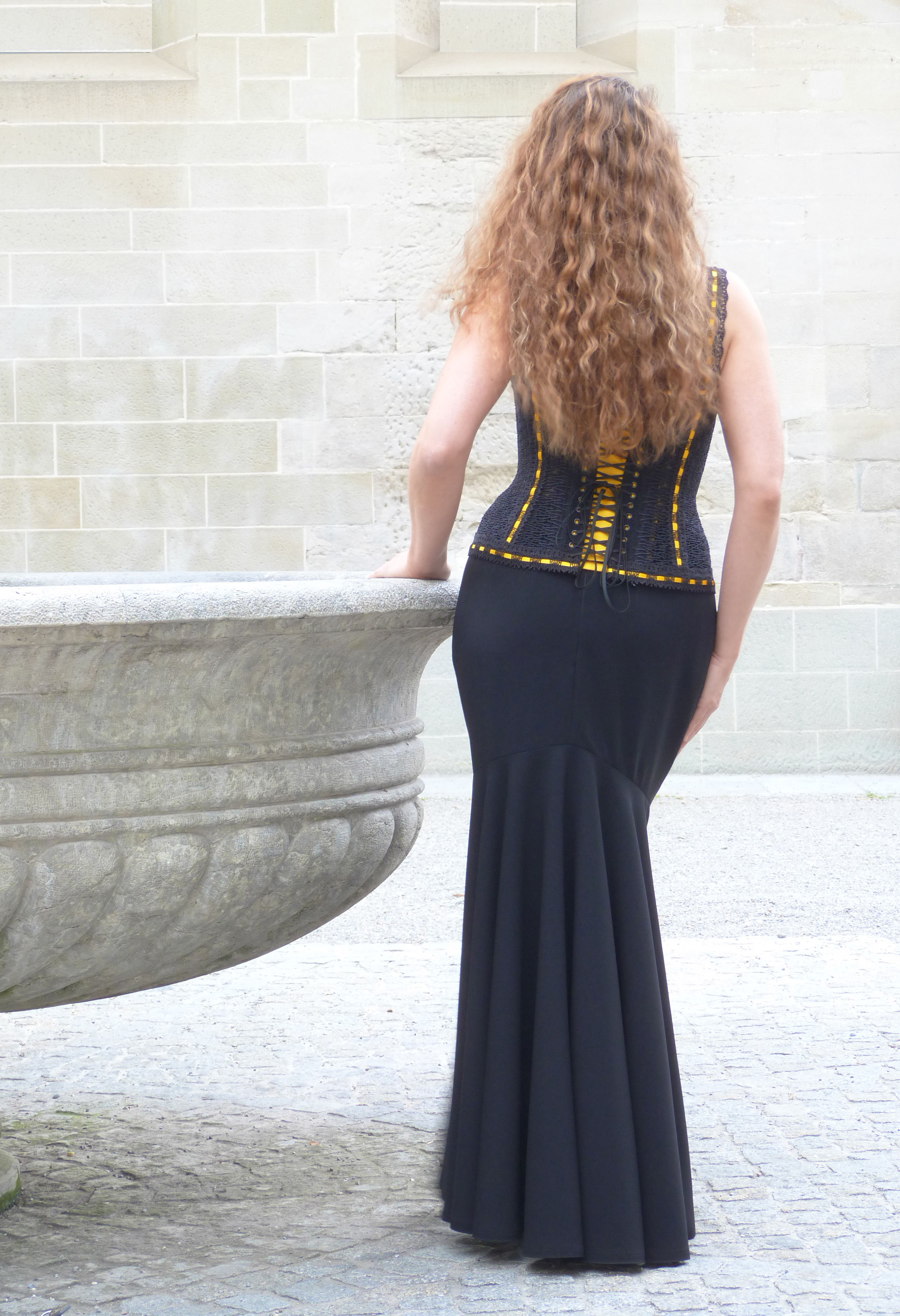 Meine Auftraggeberin wusste von Anfang an, dass die Farben schwarz und gelb für sie von Bedeutung sind. Sie wünschte zuerst ein traditionelles Korsett und beachtete weniger die Spitzenbustiers, die ich vor allem wegen des grossen Tragekomforts empfohlen habe. Erst bei der dritten Besprechung entdeckte sie den Reiz der edlen St. Galler Spitze und die attraktive Form eines Spitzenbustiers und wir konnten mit der Arbeit beginnen. Über den handwerklichen Prozess dürfen sie in meinem Artikel im Blog ecoleducorset-entrenous.com lesen.
