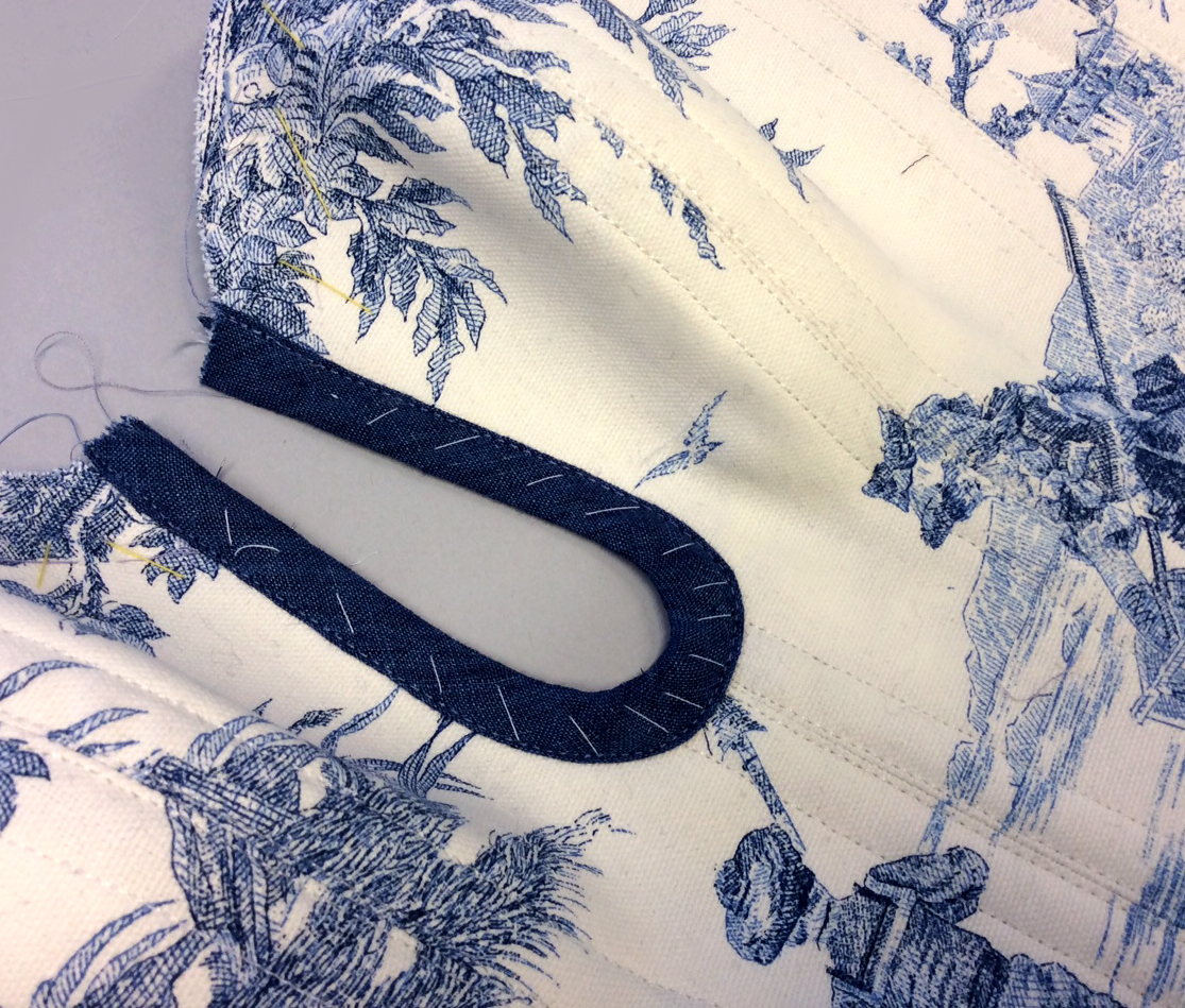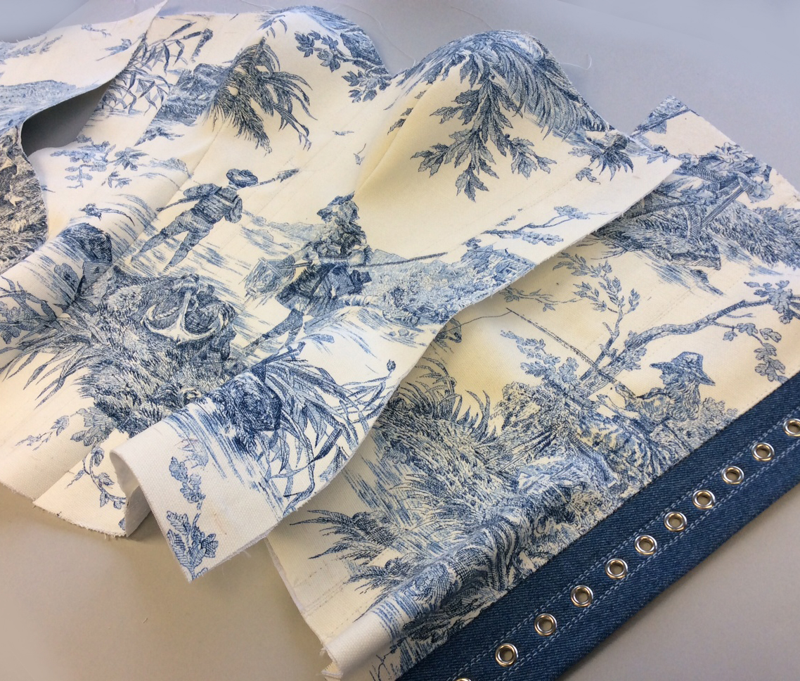 Dieses schöne Korsett entstand vor einigen Wochen auf Wunsch einer treuen Kundin. Das aus Paris stammende bedruckte Stoff mit traditionellen holländischen Motiven kann perfekt mit Jeanshose kombiniert werden. Somit kann dieses Korsett an jedem Anlass mit einem Dresscode „casual elegant“ getragen werden. Ein besonders dekoratives Element bildet die Öffnung in der vorderen Mitte, die mit einem Stoffband zu einer romantischen Schleife zusammengebunden wird. Ein kokettes Spiel mit einem Durchblick ins Dekolleté der Dame. Es war eine handwerkliche Herausforderung aber auch grosse Freude dieses Model anzufertigen!
