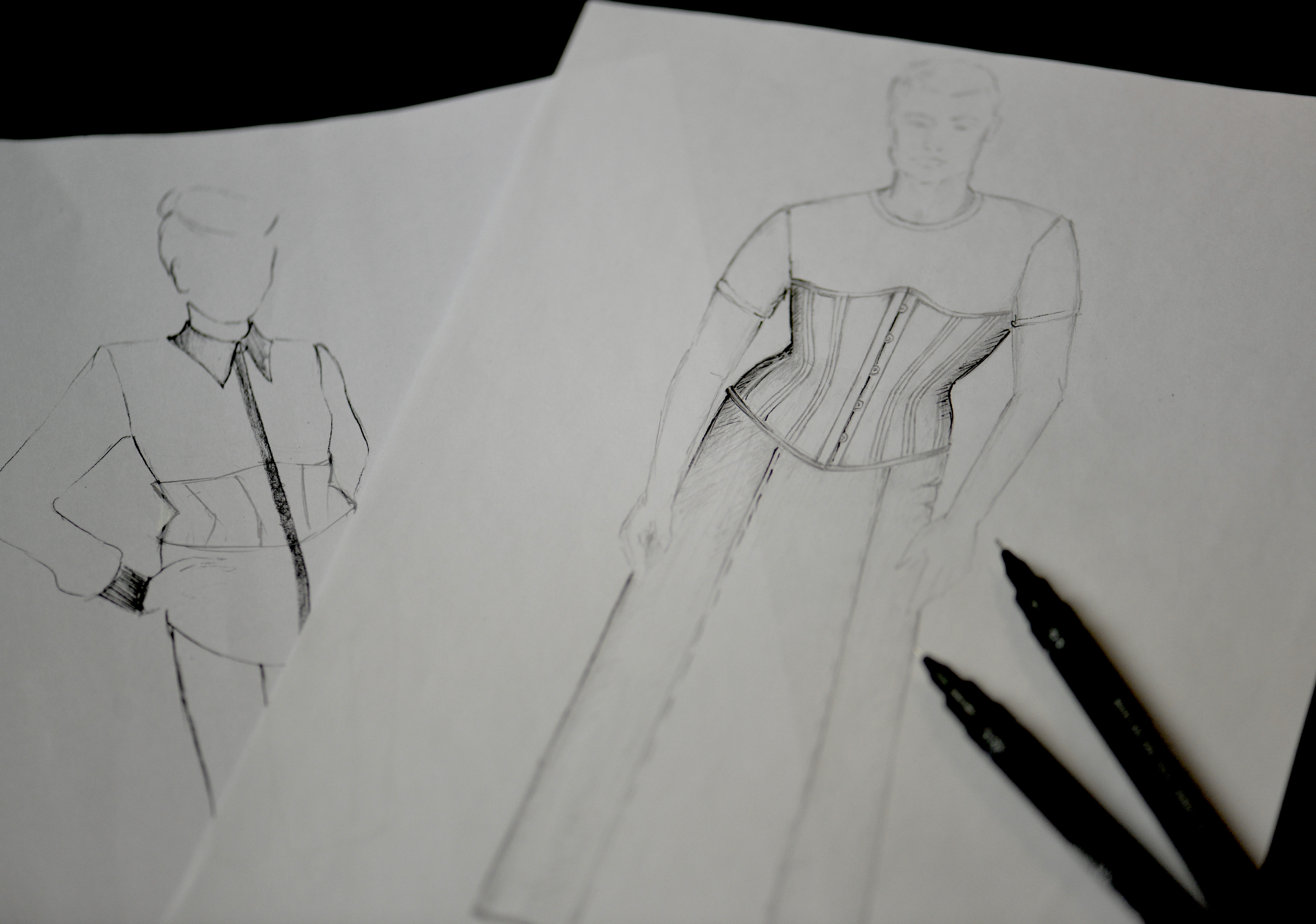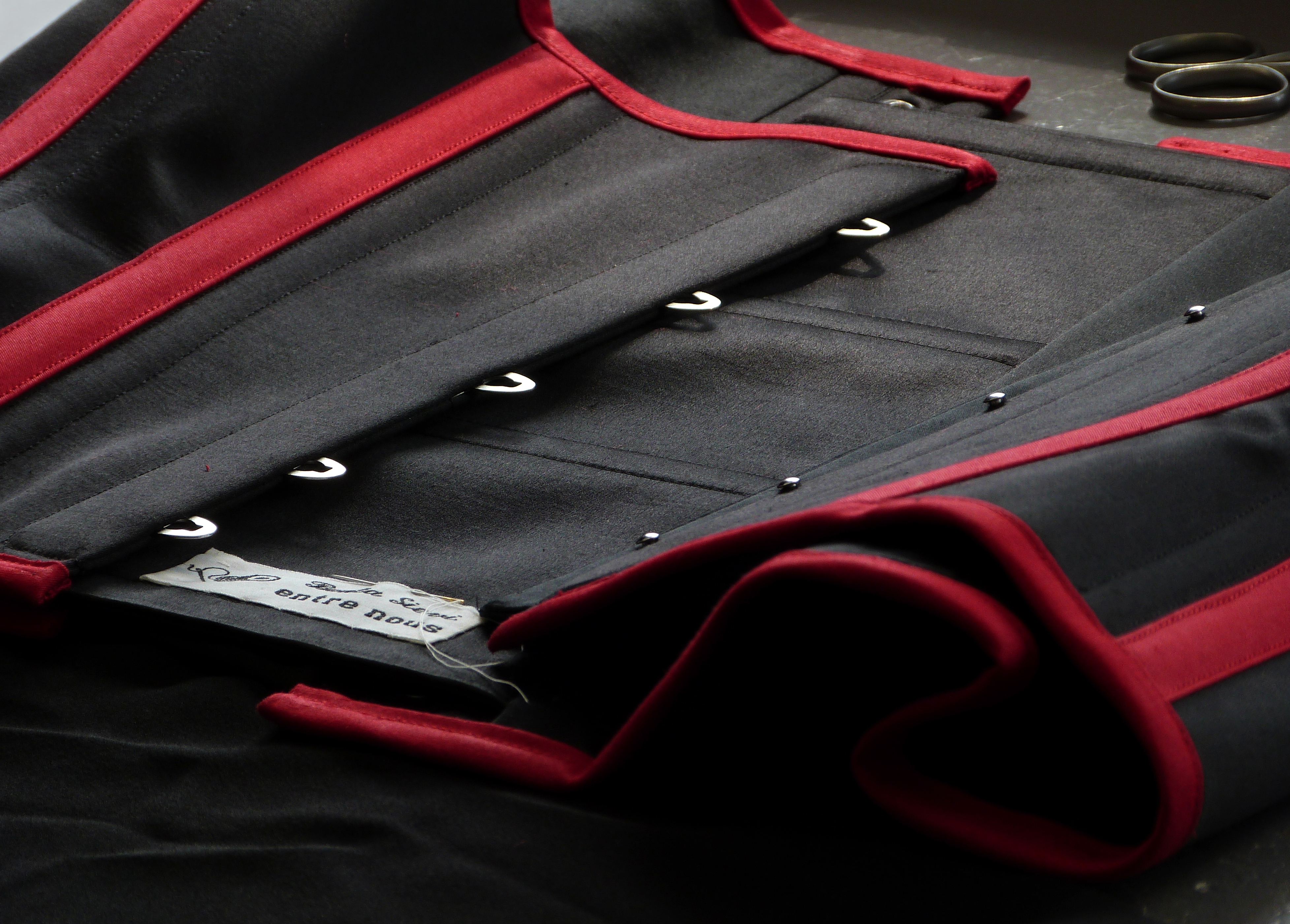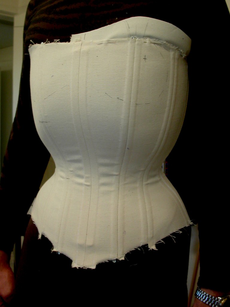 Da es anfangs 2000 zwar einige wenige Internet-Foren für Korsettträger gab, aber keine für den Austausch von Fachpersonen, die Korsetts anfertigen – und die wenigen Korsettmacher*innen, die es in Europa gab ihr Wissen streng behüteten, blieb mir nur der Weg der Autodidaktik übrig. In Bezug auf Männerkorsetts war er schwierig, weil es in den Museen, deren Spezialsammlungen ich besuchte, um historische Korsetts zu studieren, keine Herrenkorsetts zu sehen gab. Geleitet durch mein ausgeprägtes analytisches Denken und meinen handwerklichen Perfektionismus nahm ich also learning by burning in Kauf. 2001 fertigte ein sehr enges Korsett aus Rips Stoff und Leder an, das besonders schön gestaltet und – zum ersten Mal – den Ansprüchen des Kunden vollkommen zu entsprechen schien. Einige Wochen nach der Lieferung rief mich der Kunde an, mit der Nachricht, dass eine Naht unerwartet gerissen ist, als er niessen musste. Es lag sicher nicht an der Fadenstärke, da ich von Anfang an besonders starke Fäden benutzte. Das Problem war die Art und Weise, wie die Tunnel für die Korsett-Stäbe angebracht waren; schön für das Auge, boten sie nicht genügend Stütze für die Starke Spannung, die im tight lacing Korsett auf die Nähte ausgeübt wird. Dies liess sich nur ändern indem ich das ganze Korsett in einer neuen Technik noch einmal anfertigte!