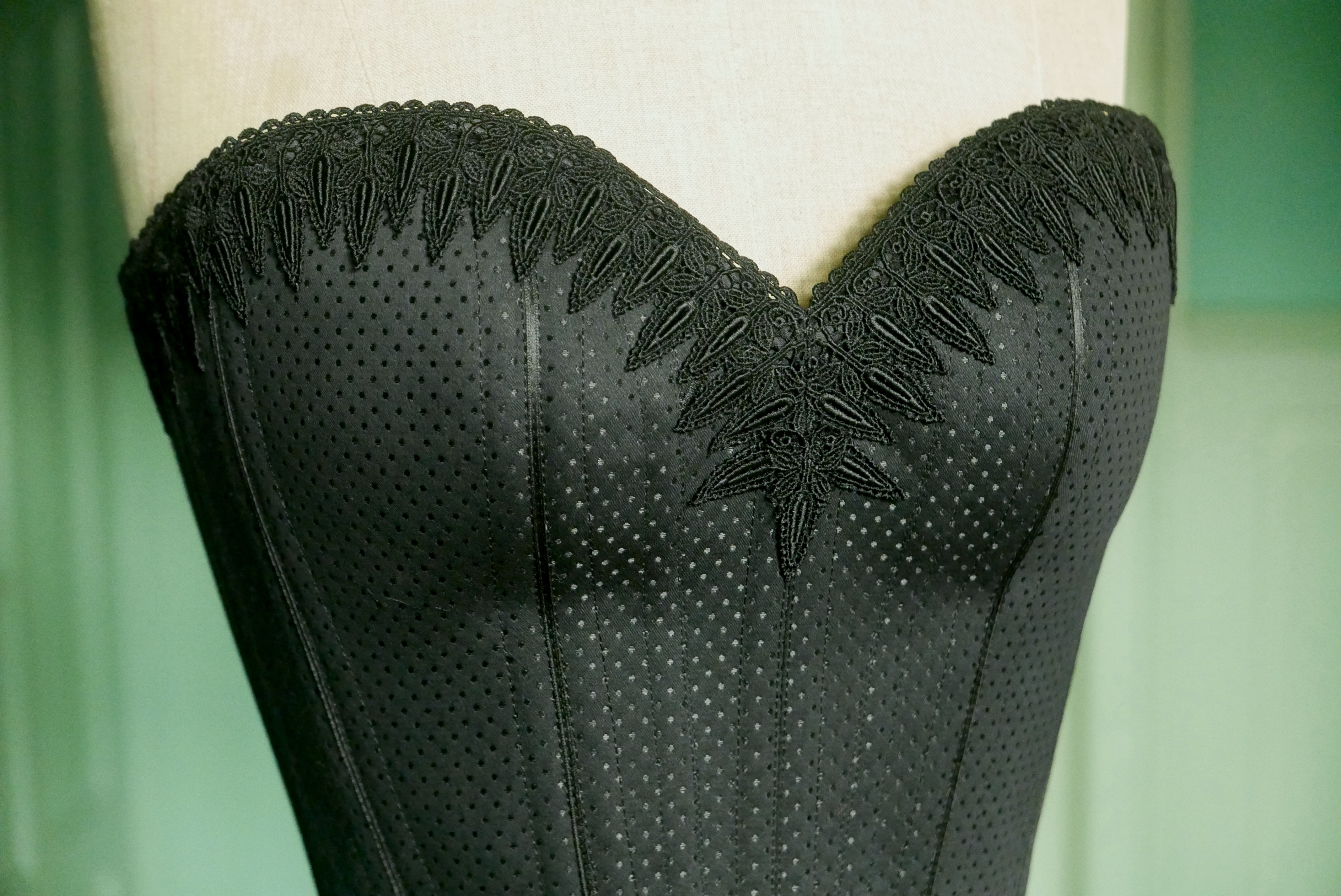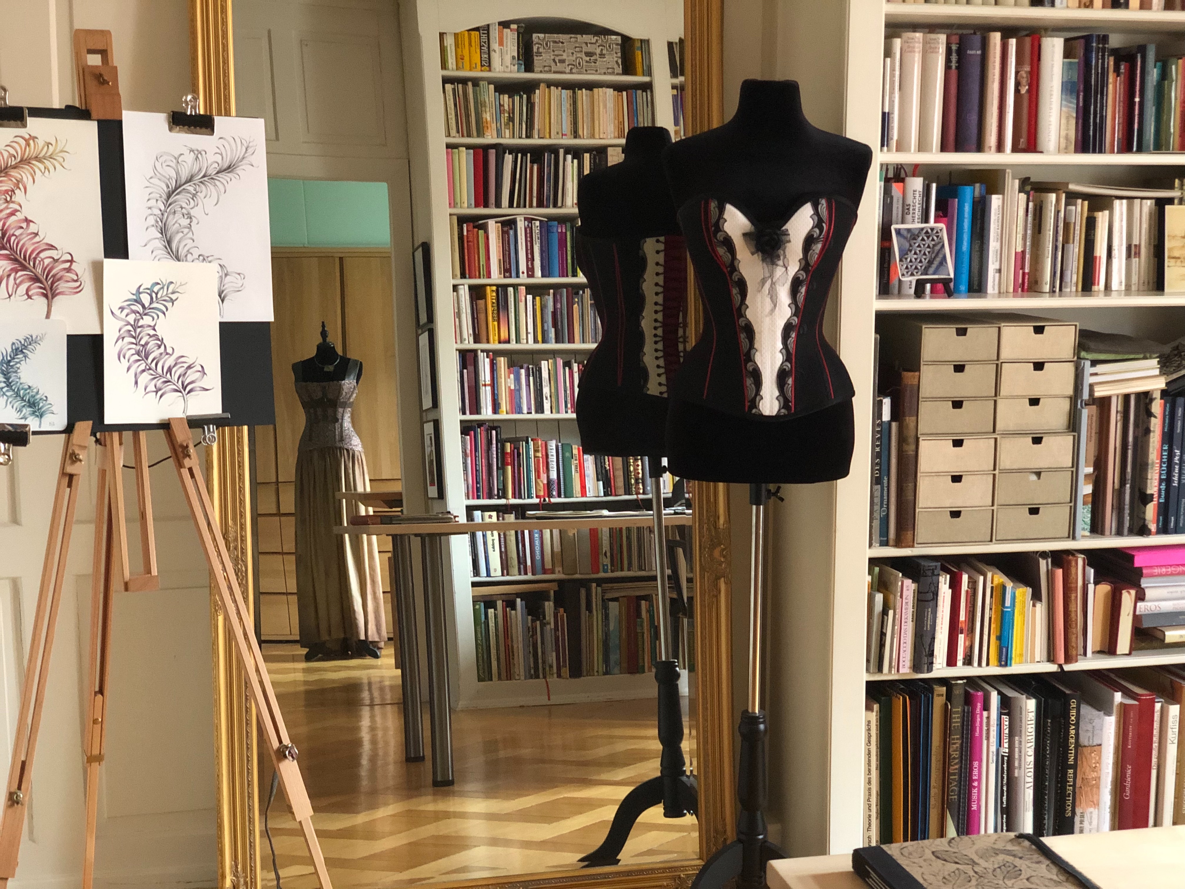 Seit 2009 teile ich mein Wissen in diesem alten Handwerk. Der am meisten besuchte Kurs „Anfertigung eines traditionellen Korsetts“ vermittelt die wichtigsten Grundtechniken der Korsettverarbeitung. In diesem Kurs verwenden wir immer hochwertige englische Korsettstoffe, zusammen mit Korsettstäben und einer Korsettschliesse, die Verzierungen werden aus St.Galler Spitze renommierter Produzenten gemacht. Dieser Kurs bietet eine perfekte Grundlage, um später Ihr eigenes Korsett zu nähen, vorausgesetzt, Sie verfügen über ein passendes Schnittmuster. Die Erstellung eines individuellen Schnittmusters ist in einem separaten Kurs möglich. Während aller Kurse arbeiten wir an modernen Brother Maschinen mit Nadeltransport und haben Zugang zu einer Brother Stickmaschine. Diese Maschinen bieten Präzision und Effizienz, ohne die traditionelle Handwerkskunst zu vernachlässigen. Meine Kursräume sind atmosphärisch gestaltet und bieten künstlerische Inspiration, um Ihre kreativen Fähigkeiten zu entfalten.