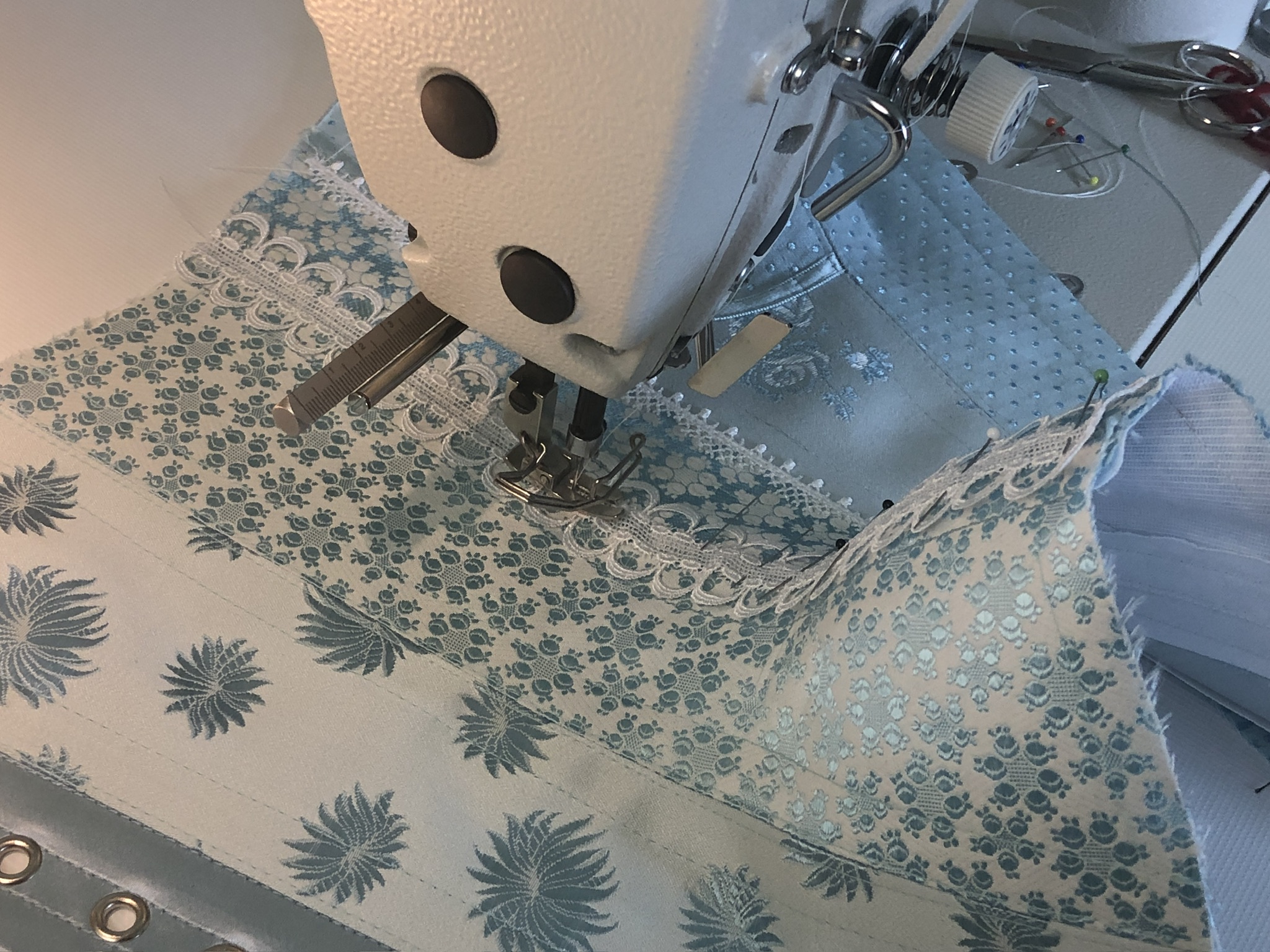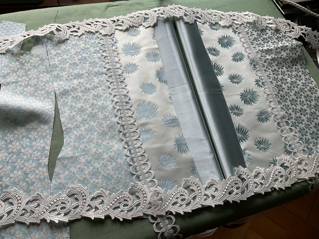 „L’heure blue“ ist ein aussergewöhnliches Korsett, das aus fünf verschiedenen Atlas- und Baumwolljacquardstoffen gefertigt wurde. Jeder dieser Stoffe stellte seine eigenen Ansprüche an die Verarbeitung, was das Projekt zu einer wahren Herausforderung machte. Die unterschiedlichen Eigenschaften der Materialien erforderten spezielle Techniken, insbesondere im Umgang mit verstärkenden Einlagen, die das Korsett nicht nur formstabil, sondern auch angenehm tragbar machen. Diese Arbeit verlangte ein hohes Mass an Fachwissen und Liebe zum Detail – genau das Wissen, das ich in meinen Kursen zur traditioneller Korsettanfertigung vermittle.