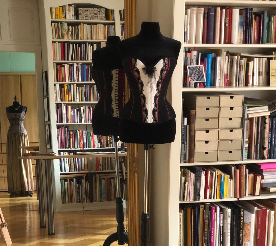 Beata Sievi bietet in ihrem Atelier auch Führungen an, die Gelegenheit bieten, sowohl zeitgenössische als auch historische Korsetts und die Geschichte dieses Kleidungsstücks näher kennenzulernen. Dieses Angebot finden sie auf der Seite „Private Korsettführungen und Mode-Erzählungen“.